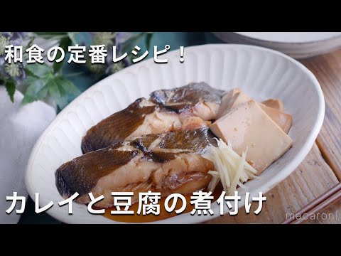 「カレイと豆腐の煮付け」のレシピと作り方を動画でご紹介します。カレイと豆腐を使った、甘辛い味付けの煮付け。調味料と合わせて煮込むだけなので、とっても簡単に作れますよ。和食の定番おかずにぴったりなひと品です!白身魚や、一緒に煮る具材は小松菜などお好みにアレンジしてくださいね。