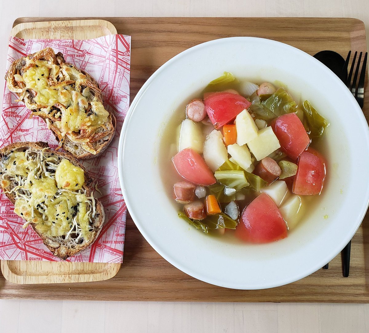 こないだ買ったごまじゃこチーズパンが美味しかったので真似てみました もう1枚はごまえびチーズパンです😁 それと今朝作った野菜スープ ひよこ豆も入れればよかった 今思い出した!