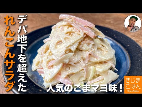 人気のれんこんレシピ【レンコン のごまマヨサラダ の作り方】デパ地下風シャキシャキ食感のマヨネーズサラダ 水っぽくならず味が決まる!
